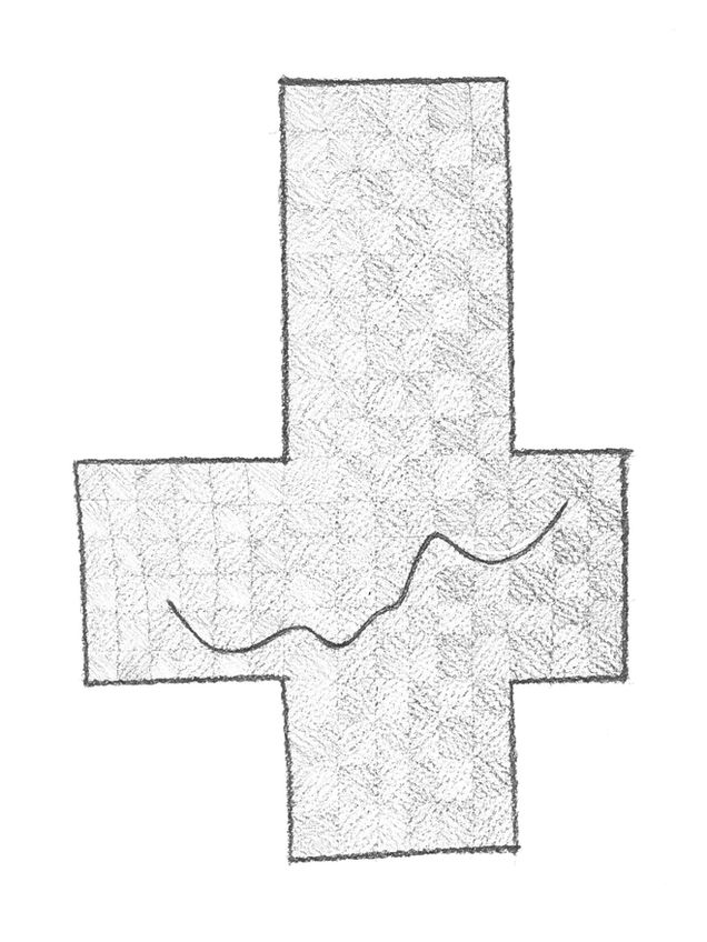 Ces tracés ont été ré-écrits à la main et inscrits dans une forme cruciforme sur une feuille de papier de format A4.